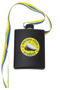 Plunta i hårdplast med skruvkork och blågult band – perfekt till studenten! Enkel att hänga runt halsen och ha med på festligheter.