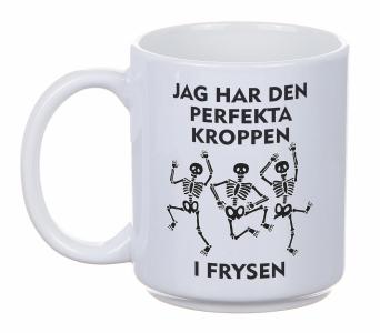 Porslinsmugg med texten "JAG HAR DEN PERFEKTA KROPPEN I FRYSEN".
