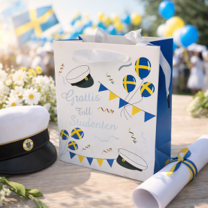 En stilren och festlig presentpåse som sätter rätt känsla på studentpresenten 🎉🎓