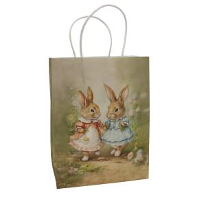 Dekorativ presentpåse i papp med gulligt motiv av harar. En rymlig påse som passar perfekt för presenter, godis eller festliga överraskningar.