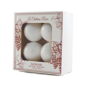 Presentförpackning med 4 st badbomber (4x35g) med underbar doft av rosévin. Perfekt present eller julklapp!