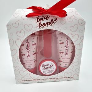 Detta charmiga presentset “Love Bomb” med doft av körsbär är en perfekt liten gåva till någon du tycker om – eller till dig själv. Setet innehåller flera skönhetsprodukter för en härlig stund av vardagslyx och egenvård.