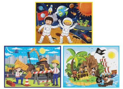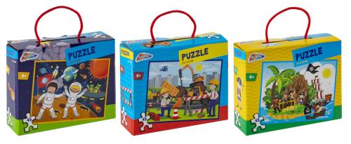 Pussel med 45 bitar, lämpligt för barn från 4 år. Finns med tre olika motiv. CE-märkt.