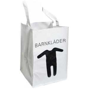 Förvaringspåse till "Barnkläder". Med den här kraftiga påsen blir det lättare att hålla ordning på kläder som ska förvaras. Påsen har rejäla handtag vilket gör den smidig att bära med sig. Mått: 32x43,5x 31,5cm. Material: plast (likvärdigt med grov pressening).