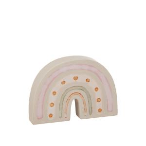 Regnbågen mäter cirka 15 x 10 cm och är tillverkad i trä med mjuka, harmoniska färger som passar i alla inredningsstilar. Hjärtanen symboliserar kärlek och trygghet – perfekt för både stora och små.