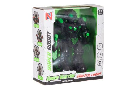 Robotens stadiga gång framåt visar dess styrka och gör den till en perfekt lekkompis för barn som älskar action och teknik. Tillverkad i plast och gummi, med en stilren svart och grön design, är roboten både hållbar och visuellt tilltalande.