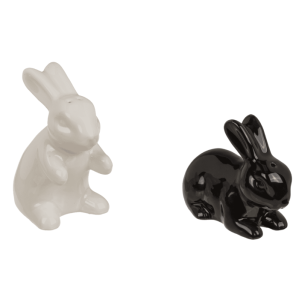 Salt- och pepparkar formade som två kaniner i en lekfull design. Perfekt samtalsstartare vid middagsbordet eller som rolig present!