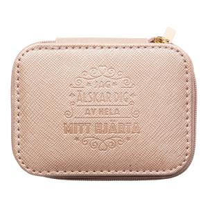 Litet och smidigt smyckeskrin med plats för 4st ringar och 2st fack för annat, till exempel halsband. Med texten "JAG ÄLSKAR DIG AV HELA MITT HJÄRTA" på locket.