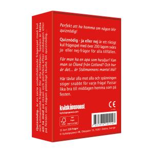 Quiznödig – ja eller nej är ett roligt frågespel med över 200 ja- eller nej-frågor. Perfekt för hemma, middagen eller festen när du vill tävla och ha kul!