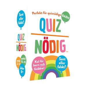 Perfekt för alla quiznödiga barn och föräldrar! Quiznödig sant eller falskt innehåller över 200 roliga och intressanta frågor där du ska skilja otroliga sanningar från knasiga lögner. Utmana föräldrar, kompisar eller syskon och den som oftast gissar rätt vinner – svårare är det inte. Ett perfekt spel for alla quiznödiga – i bilen, på kalaset, på resan eller hemma på fredagsmyset.