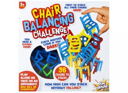 Roligt spel som går ut på att du ska lyckas stapla så många stolar som möjligt på höjden. Den som först lyckas stapla alla sina stolar vinner. Rekommenderas från 3 år. CE märkt.