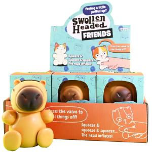När du klämmer på figurens kropp blåses huvudet upp som en rund bubbla – en både underhållande och stresslindrande funktion som gör den svår att lägga ifrån sig.