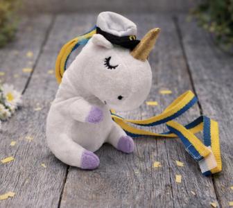 Fira studenten med ett charmigt studenthänge i form av en vit enhörning, komplett med blågult band. Perfekt att hänga runt halsen eller på presenten.