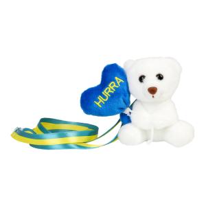 Vit nalle med texten “Hurra”
