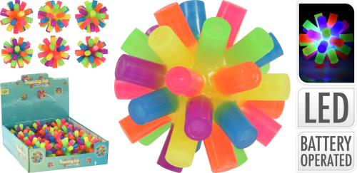 Tokigt studsande studsboll med LED. Drivs av 3xAG13/LR44 (ej utbytbara). Mått: ca 8 cm.