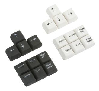Sudd i 10-pack som ser ut som tangenter. Finns i svart eller vitt.