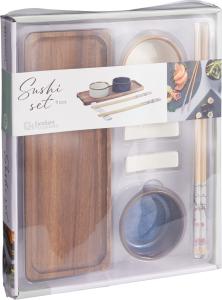 Setet består av två kobachi-skålar, två par dekorativa ätpinnar med körsbärsblommor, två hållare för ätpinnar samt en träbricka som ramar in allt på ett harmoniskt sätt.