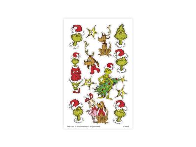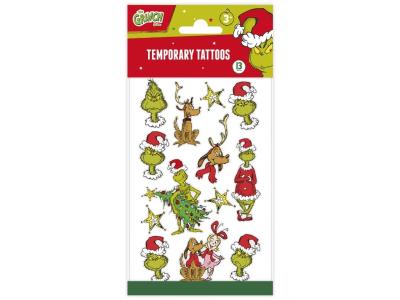 På arket ingår 13 olika tatueringar med klassiska figurer som Grinchen, Cindy Lou och Max – perfekt för julkalas, pysselstunder eller som en rolig överraskning i adventskalendern.