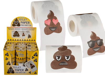 Toalettrulle med motiv av Poo emoji.