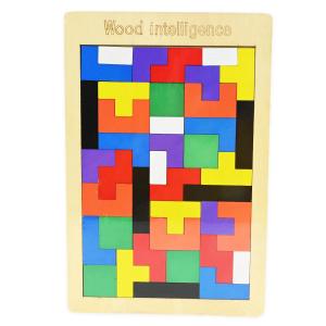 Färgglatt träpussel med 40 bitar i ram – känt som "Wood Intelligence" eller ryskt blockpussel. Skapa mönster, figurer och former. Tränar hjärnan hos både barn och vuxna.