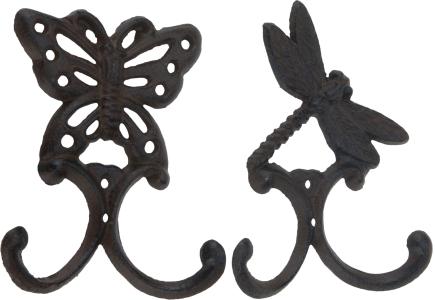 Väggkrok i gjutjärn med två stycken krokar. ca 14x10,5cm. OBS glöm ej välja fjäril eller trollslända.