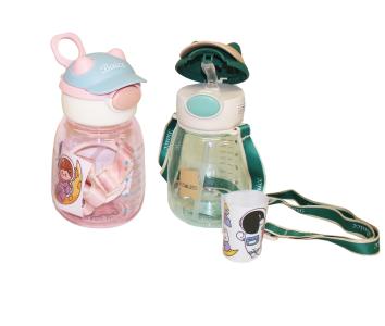 Vattenflaska för barn med sugrör och lock.